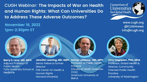 Topic CUGH Webinar: The Impacts of War on Health and Human Rights: What Can Universities Do to Address These Adverse Outcomes?